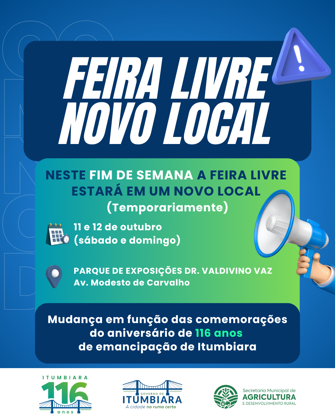 A mudança acontece por conta das comemorações dos 116 anos de emancipação de Itumbiara. 🎉