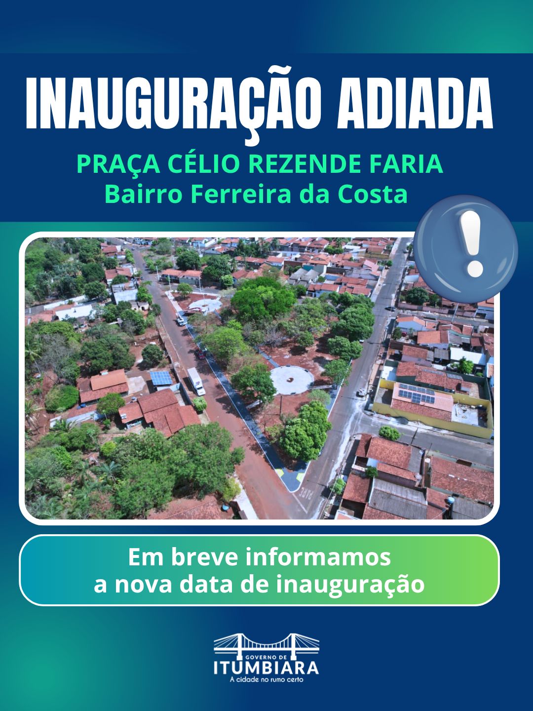A inauguração da Praça Célio Rezende Faria, no bairro Ferreira da Costa, foi adiada.