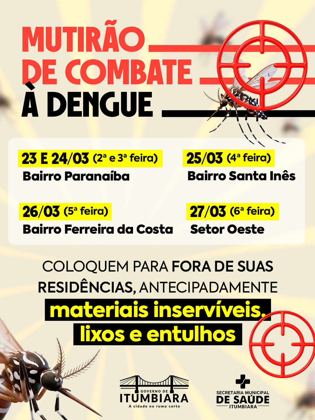 MUTIRÃO DE COMBATE À DENGUE NOS BAIRROS PARANAÍBA, SANTA INÊS, FERREIRA DA COSTA E SETOR OESTE