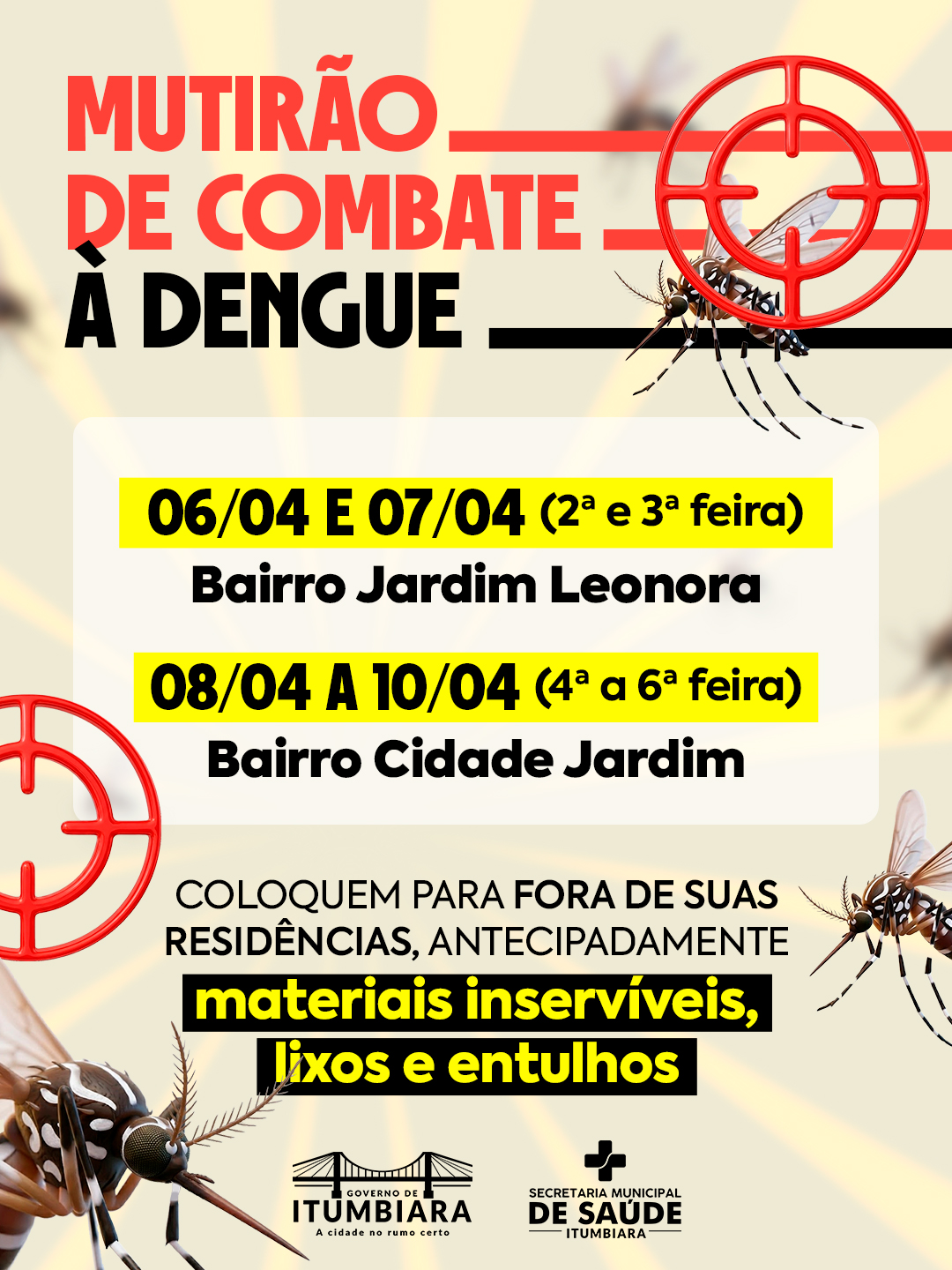 MUTIRÃO DE COMBATE À DENGUE NOS BAIRROS JARDIM LEONORA E CIDADE JARDIM NA SEMANA QUE VEM