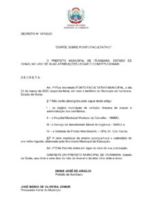 O decreto n.º 167/2025, sobre este ponto facultativo do Carnaval, foi publicado no Diário Oficial do Município desta quarta-feira, dia 28 de fevereiro, e está disponível no site www.itumbiara.go.gov.br .