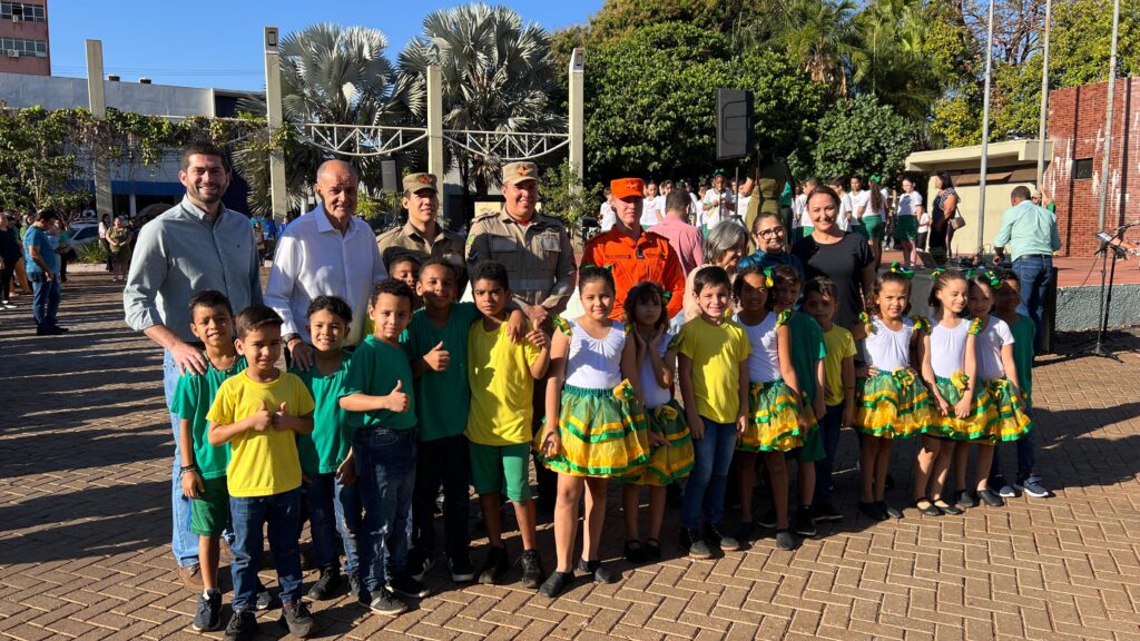 A abertura da Semana da Pátria na segunda-feira, dia 1º de setembro, contou com a participação do prefeito de Itumbiara, Dione Araújo, da secretária municipal de Educação, Silvana Fernandes Matos Macedo, vereadores, autoridades, militares, convidados e estudantes.